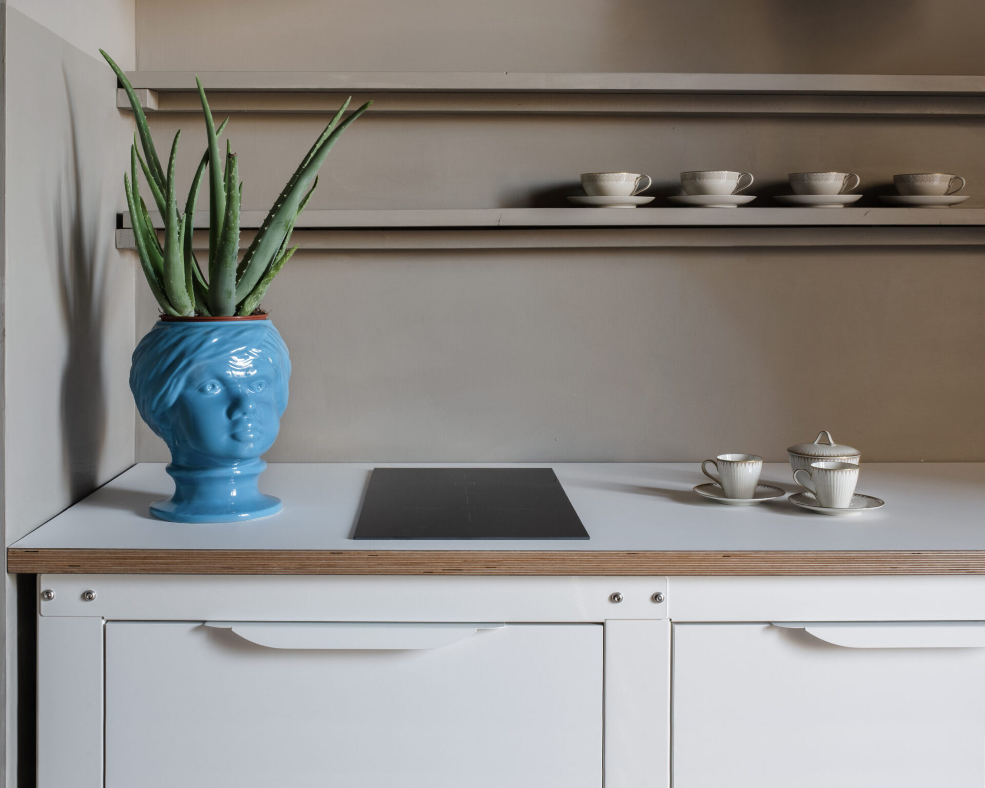 Box con doppia anta (larghezza totale 80 cm) abbinato a un piano cottura a induzione.